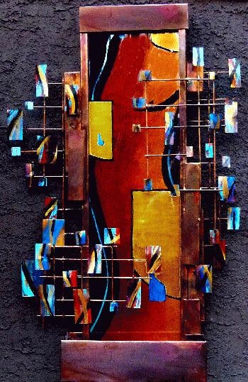 Well, it was bound to happen, sort of like the first time someone dipped a chocolate bar in a jar of peanut butter and said, "Mmmmm..." Cameron "dipped" one of our Galaxy Fountains into one of our copper abstracts and here's what happened! The water flows down the large Lexan panel and the framework and copper panels really make you feel like you're in the city.
