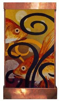 These goldfish look a little guilty, I think. They look like they've been disappearing beneath the lily pads for...prolonged periods. Actually, if you think about it, goldfish always look a little guilty. Anyway... If you're into goldfish or just fish in general, these are really beautiful and very true-to-life. With the water raining down in front of them this is one beautiful wall scene!